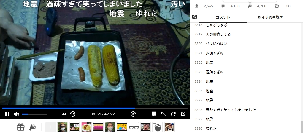 リスナーがいつものノリで悪ふざけで「地震」とコメを打つ。