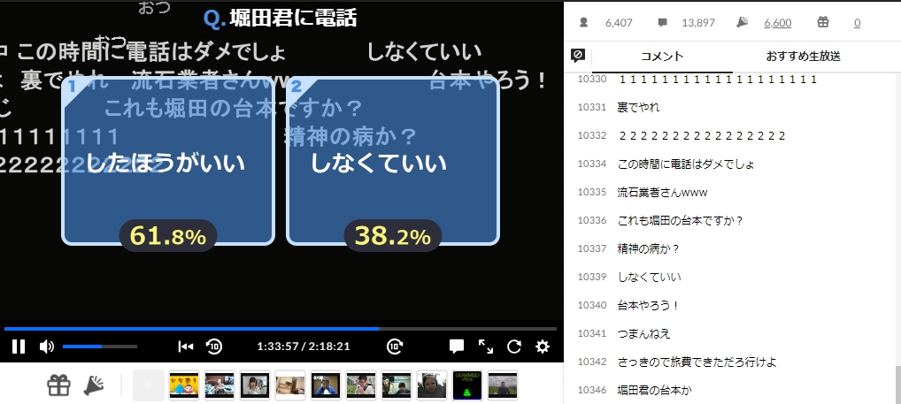 と言って堀田みなみに電話するかどうかのアンケートを開始。